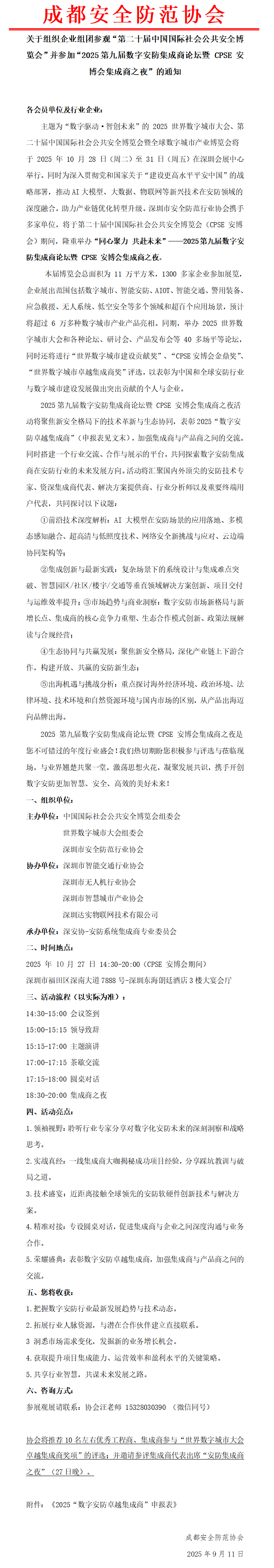> 关于组织企业组团参加“2025第九届数字安防集成商论坛暨CPSE安博会集成商之夜”的通知