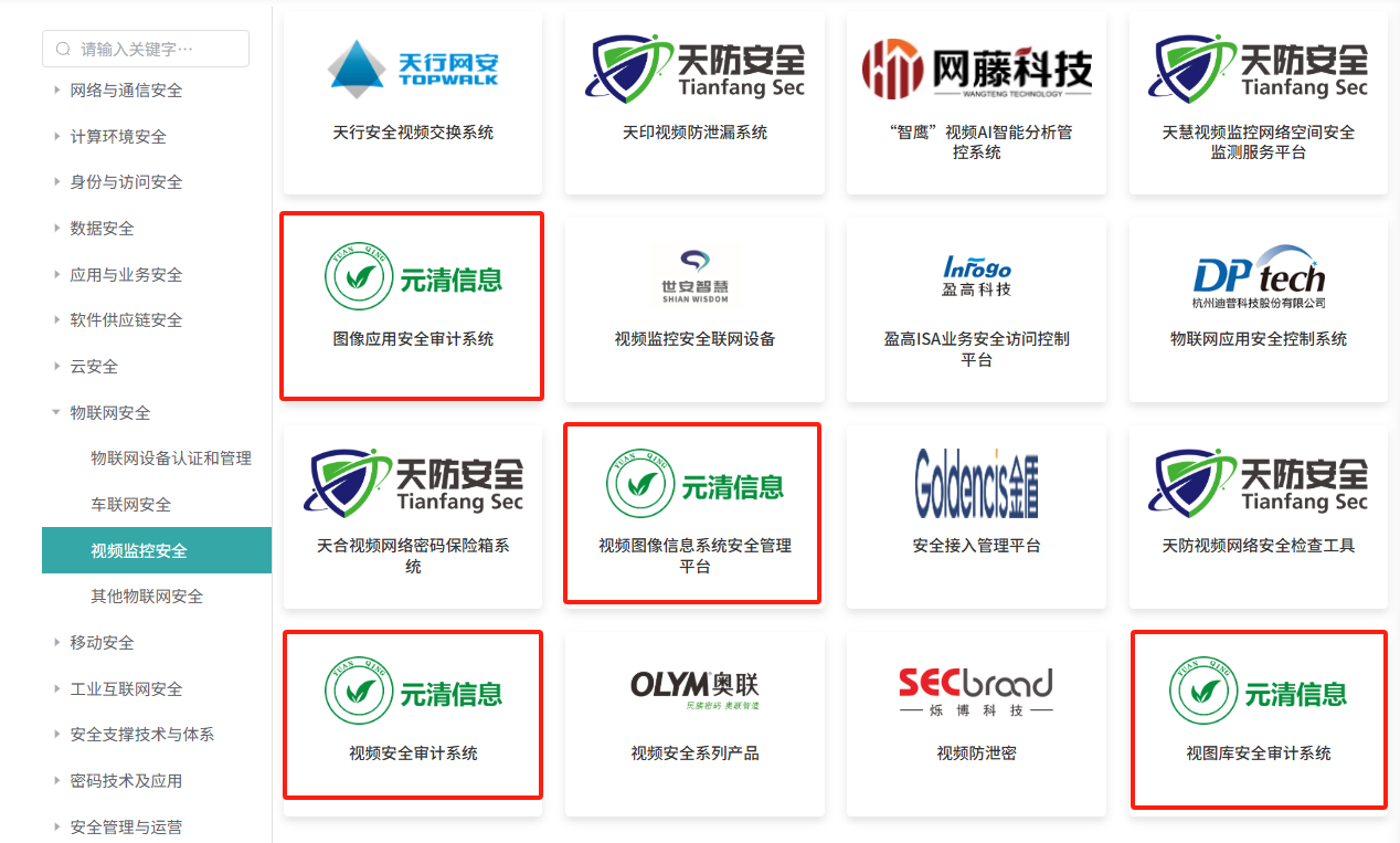 自主研发的视频安全审计系统、图像应用安全审计系统、视图库安全审计系统、视频图像信息系统安全管理平台四款产品成功入选【物联网安全-视频监控安全】,数据库安全审计及性能监测系统成功入选【数据安全-数据库安全】。