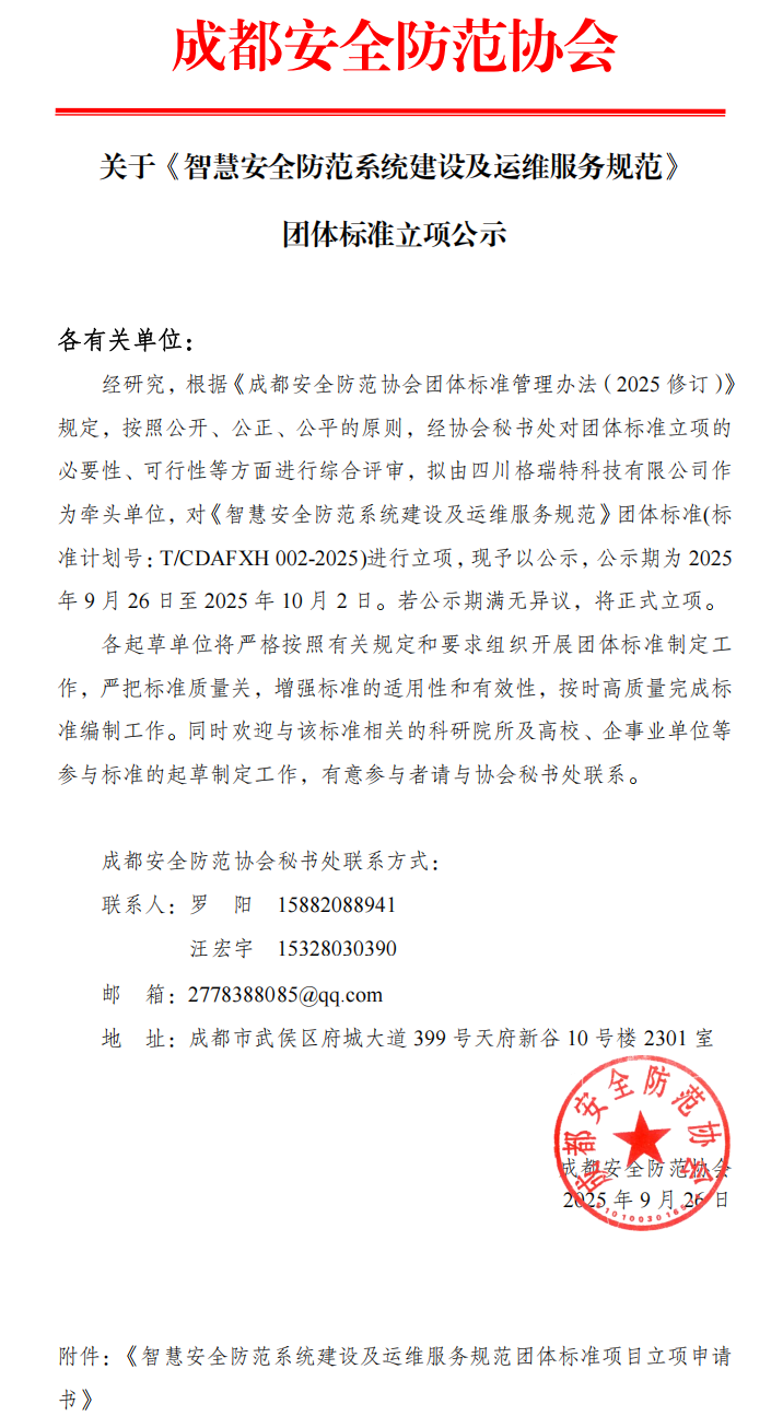 > 关于《智慧安全防范系统建设及运维服务规范》 团体标准立项公示
