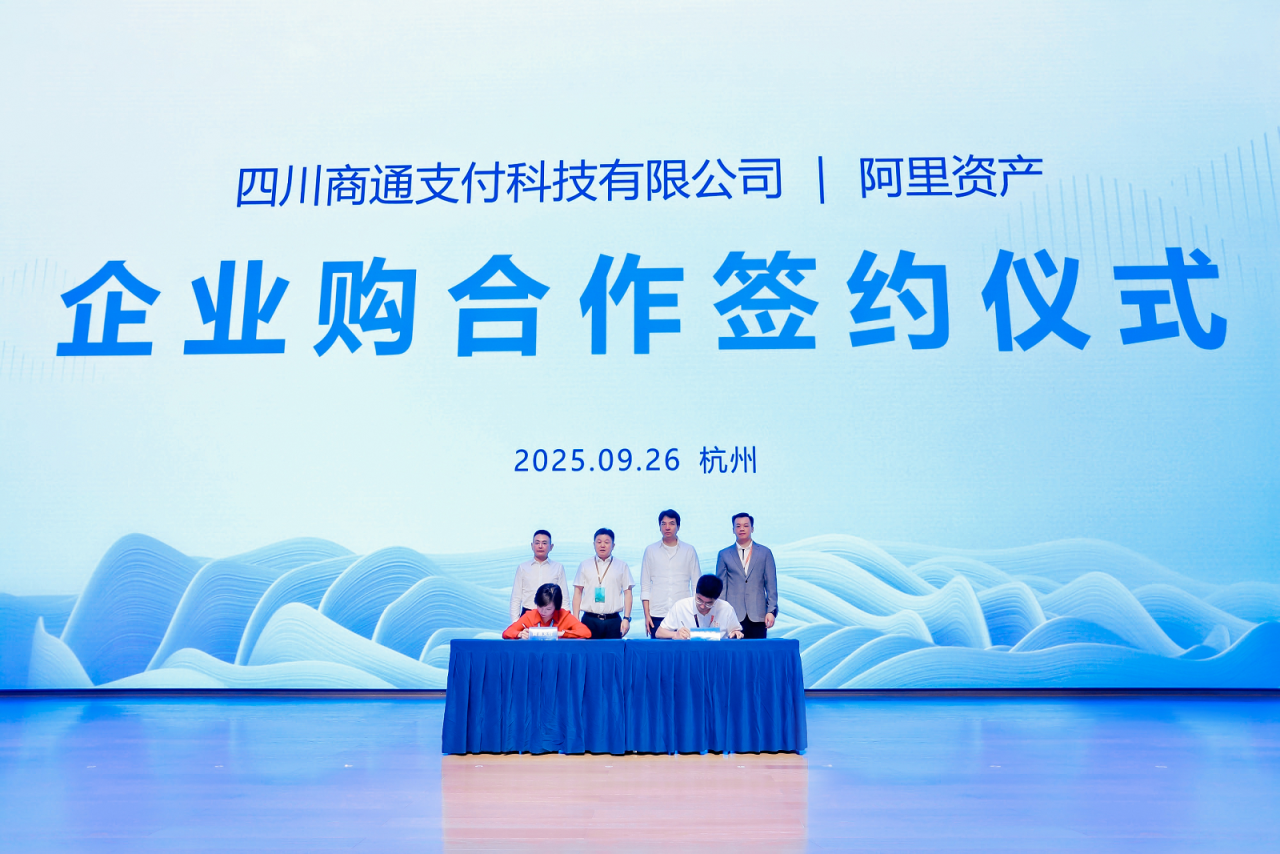 近日,集团旗下四川商通支付科技有限公司(简称“商通科技”),与阿里数智化企业购平台正式达成合作。集团副总经理袁继国,阿里巴巴集团副总裁、阿里资产总裁李然共同见证签约仪式。
