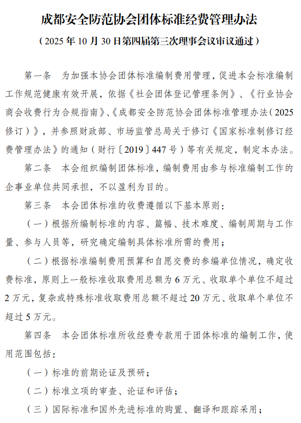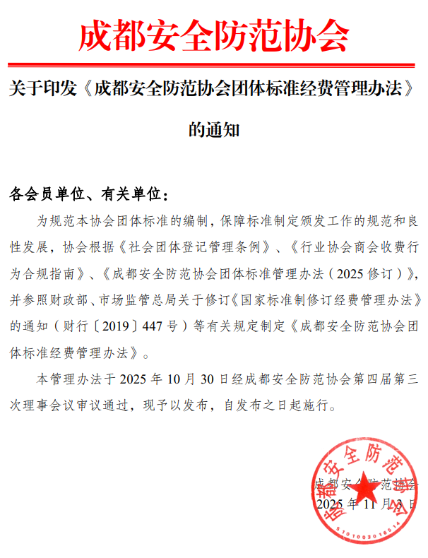 关于印发《成都安全防范协会团体标准经费管理办法》的通知