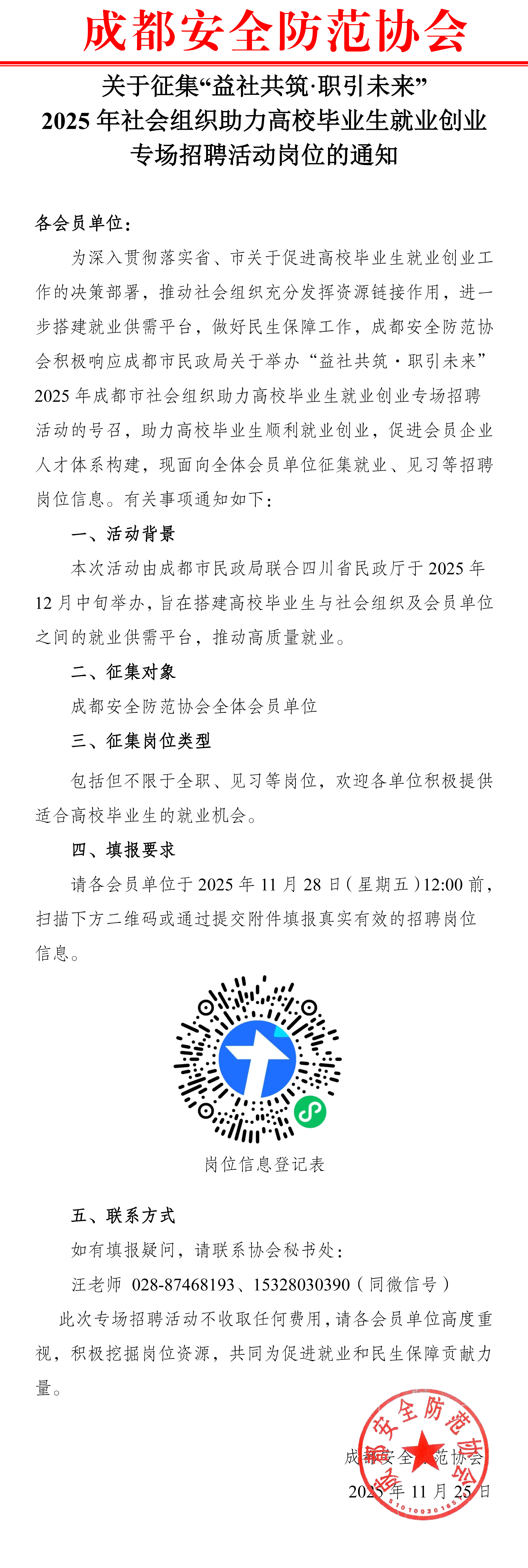 > 关于征集“益社共筑·职引未来”2025年社会组织助力高校毕业生就业创业专场招聘活动岗位的通知