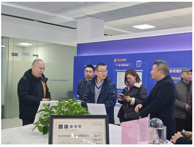 当日15时,参访活动正式拉开帷幕。在宜宾中星技术智能系统有限公司总经理王静波、技术负责人姜昊的全程陪同下,参访团首先走进“星光中国芯工程”展示区。王静波总经理向到访代表详细介绍了中星微技术股份有限公司的发展历程,重点阐述了“星光中国芯工程”的战略意义与发展成果。据介绍,该工程致力于超大规模集成电路芯片研发设计产业化,1999年在“两弹一星”元勋、全国人大常委会原副委员长、中国科协原主席周光召院士的倡导下,由国家工业和信息化部(原信息产业部)、财政部投资启动,得到科技部、发改委、北京市政府等多方大力支持,由邓中翰、杨晓东、张韵东等一批海归爱国博士组建的中星微团队承担实施。工程始终坚持新型举国体制,走出了一条自主核心芯片、自主国家标准、自主产品设备、自主可控系统的创新发展道路。
