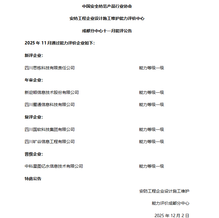 > 2025年11月能评公告