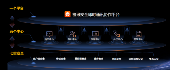 橙讯以即时通讯为核心,创新提出“1个平台+5大中心+7重安全”架构: