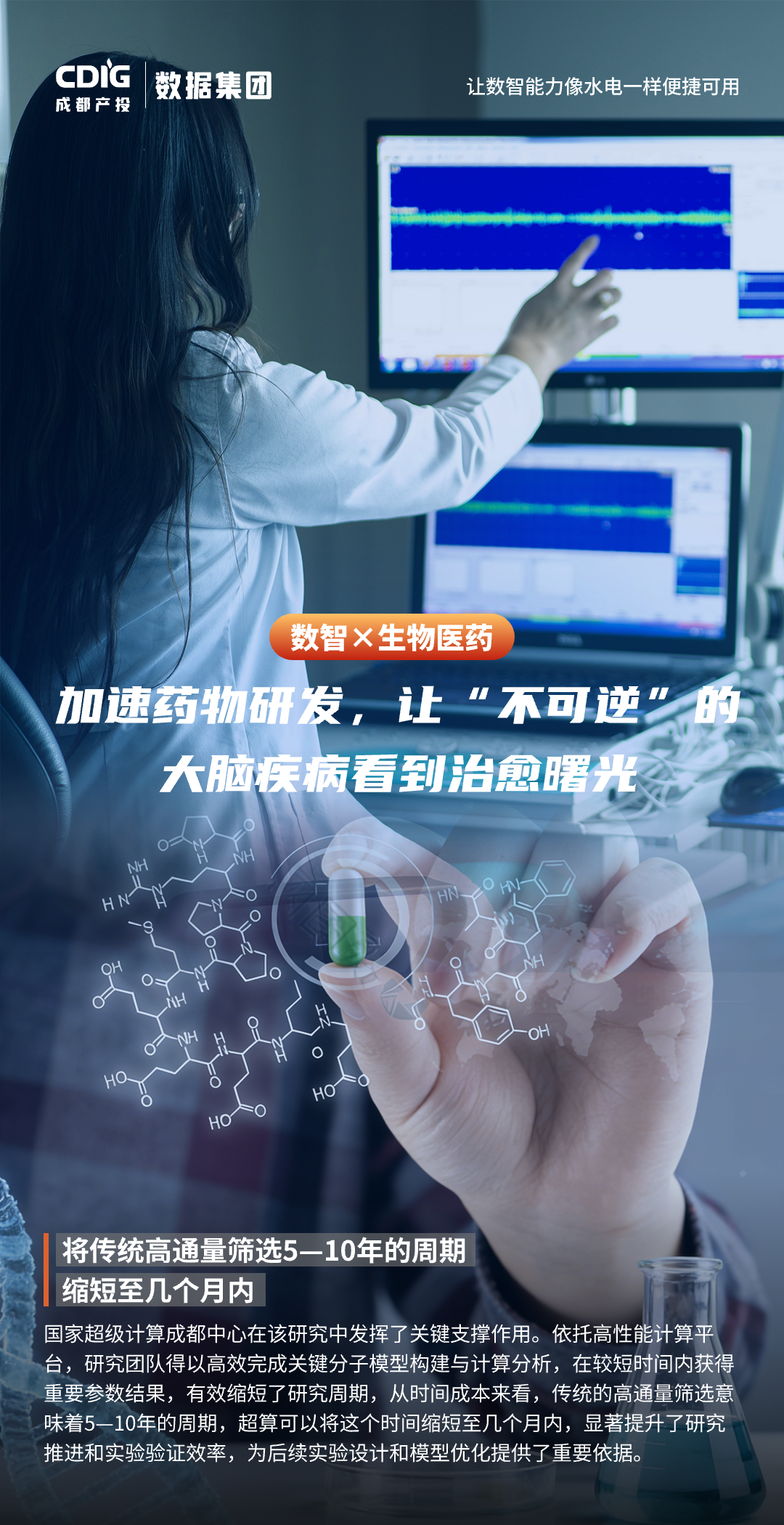 阿尔茨海默病被称为“不可逆的大脑疾病”,过去二十年全球数百种新药研发几乎全军覆没,核心难题在于药物分子设计复杂、血脑屏障机制模拟计算量巨大,传统算力难以支撑。国家超级计算成都中心联合四川大学华西医院放射学研究中心,依托“算力+算法+服务”三位一体的综合技术优势,高效完成多价配体与受体结合动力学的能量模拟及跨膜转运过程的时空分子动力学计算,为血脑屏障受体(LRP1)结合“价度”设计提供关键参数支持。