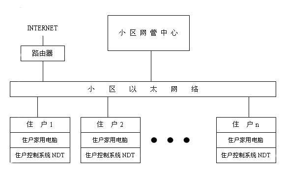 对于小区的安全系统和管理系统,目前可见到的均为实现单独功能的系统,如实现水、电、气三表抄收的系统、报警系统等。本系统采用的是以网络智能控制数据终端(NDT)为中心产品的一套方案,由于该产品集中了防盗、防灾、求助、三表抄收、信息发布和家电控制等功能,因此系统集成度高,设计简化,成本大为降低。