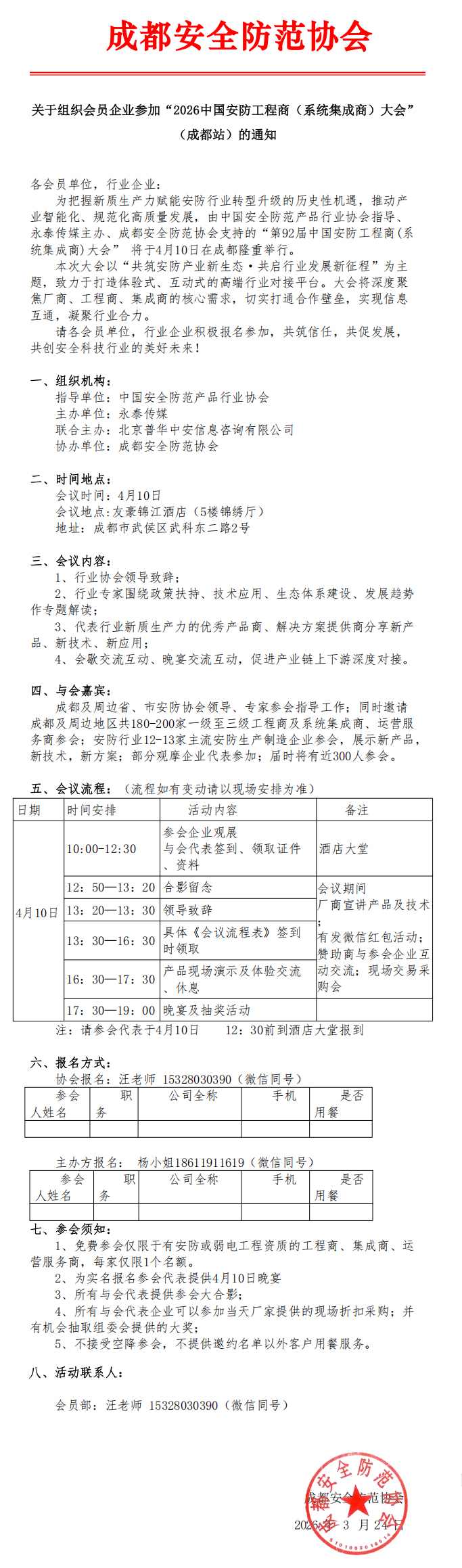 > 关于组织会员企业参加“2026中国安防工程商(系统集成商)大会”(成都站)的通知