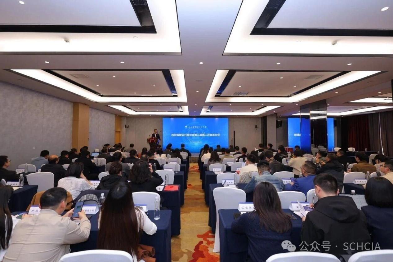 2026年3月26日,四川省密码行业协会第二届第二次会员大会在成都成功召开。四川省密码管理局局长张卫东、副局长陈喜,成都市密码管理局副局长刘磊等领导出席会议。成都市保密协会秘书长许鸿涛、成都安全防范协会秘书长王永宁应邀参会。协会理事长祝世雄、监事长吴德志、协会会员单位代表约100人参加会议。秘书长李新主持大会。