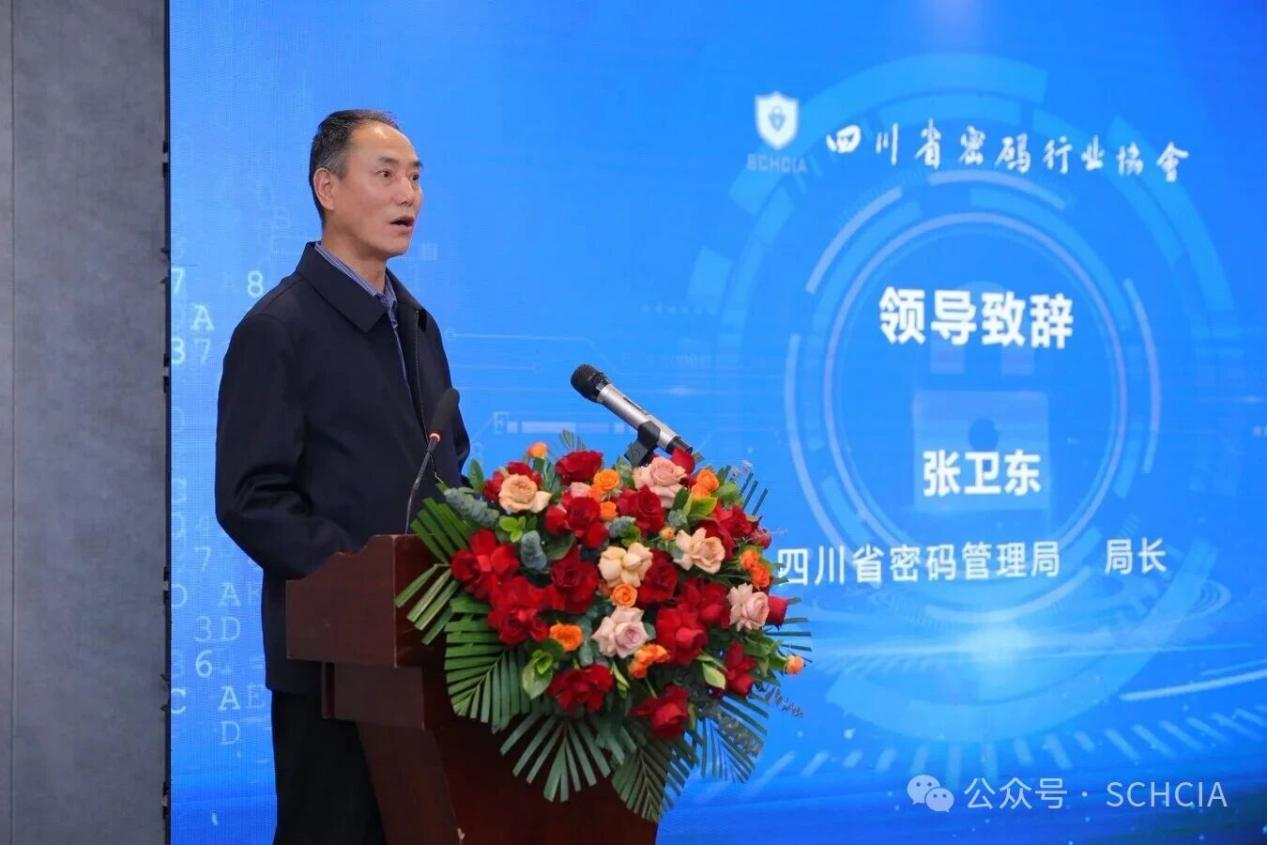 张卫东局长在致辞中指出,过去一年,协会聚焦国家所需、四川所能、行业所向,充分发挥桥梁纽带作用和组织优势,认真履职,担当作为,各项工作取得了新进展、新成效。他对协会今年工作提出四点希望:一是在强化政治引领上展现新担当,二是在提升服务效能上实现新突破,三是在推动行业治理上探索新路径,四是在加强自身建设上增添新举措。他表示,省密码管理局将一如既往支持协会工作,助力协会规范化建设和高质量发展,与全体会员单位共同书写“十五五”时期四川密码事业发展新篇章!