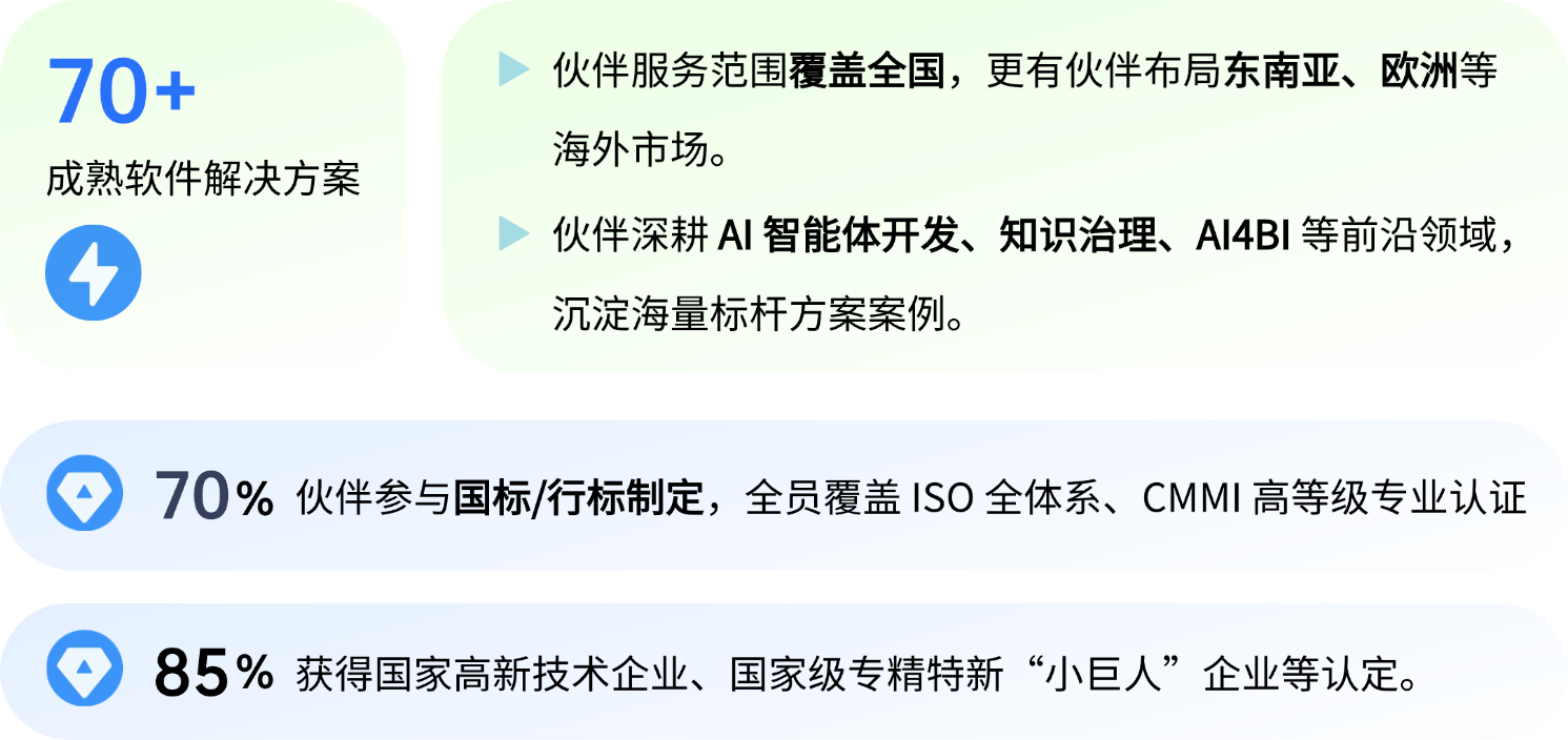 软件解决方案能力:应具备业务咨询、应用整合、定制化开发能力,可针对用户场景打造完整软件解决方案。