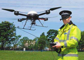 这款遥控直升机原本用于军事侦察,所以行动时几乎无声。重不到一公斤,直径约一公尺,不用3分钟就能升空,机动性很够。电池充一次电,可以在空中停留20分钟。英国警方预计在6月正式应用遥控直升机,将有3个月的试验期。