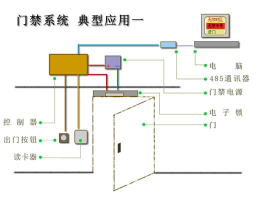 最基本的应用,使用485控制器、读卡器、转换器、锁、电源等。 具有门禁的基本功能 基本的联网系统 只有一个或者2个读卡器 成本低廉 通过该结构图,可以了解基本的门禁系统 应用对象: 对门禁要求不高,需要有基本的卡片管理,记录刷卡事件的项目,安装数量只有一台的情况。 管理的卡片比较少。 对性能要求不高。