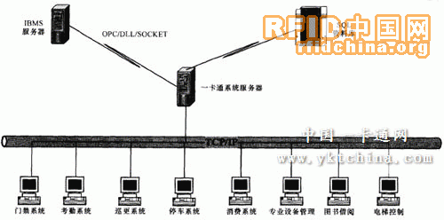 (1)广电智能建筑一卡通管理系统要求采用TCP/IP传输协议,运用先进的计算机网络技术、通信技术及非接触式感应卡技术,为广电中心大楼的各项管理功能提供现代化手段,以提高管理质量和水平。通过TCP/IP协议,要求将一卡通各个子系统进行连接,实现一卡一库。建议采用C/S或B/S构架的系统体系,这样通过一个局域网一个数据库服务器,配置多个管理工作站,可以方便地实现系统扩展。