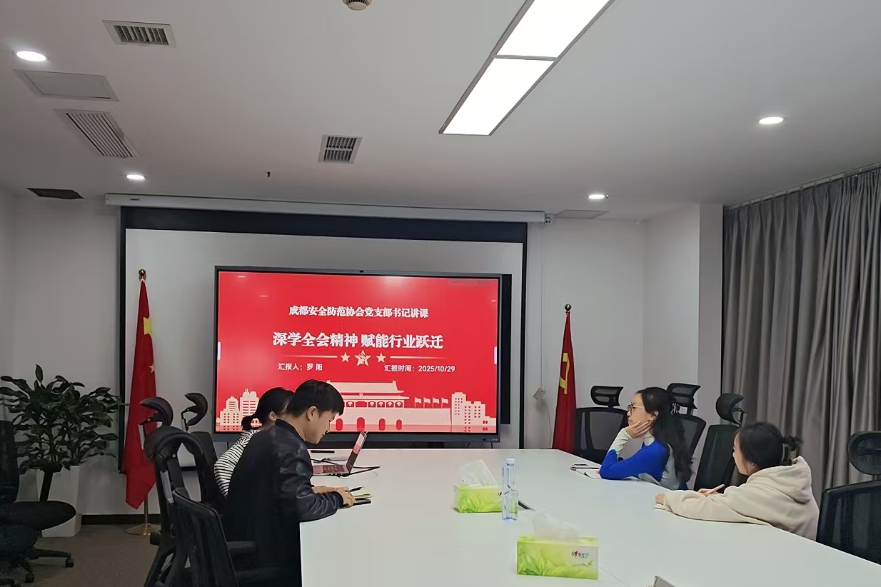 近日,成都安全防范协会党支部组织召开专题党课“深学全会精神赋能行业跃迁”,深入学习党的二十届四中全会